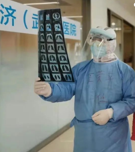 52歲的王榮平主任是此次抗疫突擊隊中年齡最大的隊員,他把多年在部隊醫(yī)院養(yǎng)成的良好作風(fēng),帶到了如今的崗位上。在隔離病房內(nèi)值班時,遇到情緒低落或脾氣暴躁的患者,王榮平主任會耐心做思想工作開導(dǎo)他們,通俗易懂地講解疾病發(fā)生發(fā)展的過程,以及要注意的事項,幫助患者樹立戰(zhàn)勝病毒的信心。為此,許多患者都非常信任王榮平主任,看到他值班時都喜歡湊上前來聊幾句。