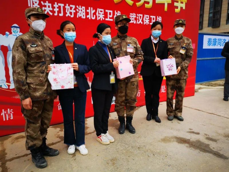 戰(zhàn)地玫瑰,鏗鏘綻放。在國際婦女節(jié)到來之際,泰康同濟(武漢)醫(yī)院舉辦了“軍民協(xié)作,同慶三八”關(guān)愛女醫(yī)護慰問活動?,F(xiàn)場,泰康同濟(武漢)醫(yī)院將醫(yī)護人員自己設(shè)計縫制的380個便攜“TK包”,贈送給了軍方醫(yī)療隊。