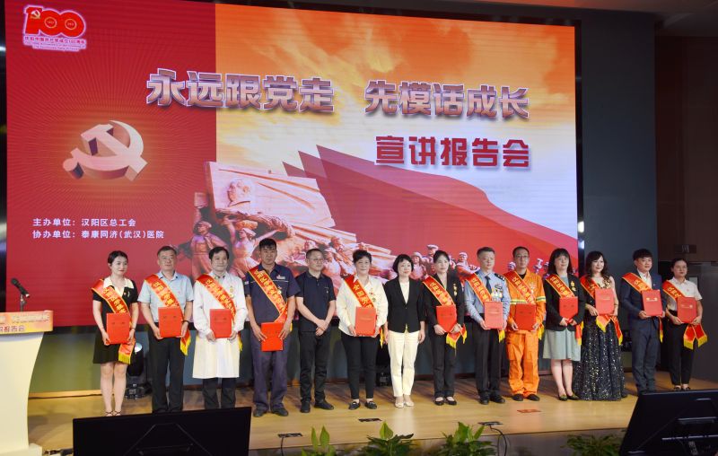 奮斗百年路,啟航新征程。6月10日下午,漢陽區(qū)總工會“永遠跟黨走·先模話成長”勞模宣講團先進事跡報告會走進泰康同濟(武漢)醫(yī)院,10名宣講團成員講述初心故事,凝聚奮進力量。全區(qū)各單位工會主席及部分企事業(yè)單位職工代表近200余人聆聽報告,感受先模榜樣力量。