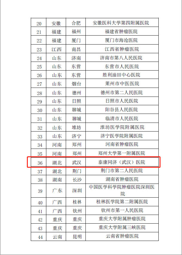 經(jīng)國家癌癥中心評定,泰康同濟(武漢)醫(yī)院等50家醫(yī)療機構(gòu)入選項目第二批試點醫(yī)院,其中,我院為本批次唯二入選的湖北省醫(yī)院。