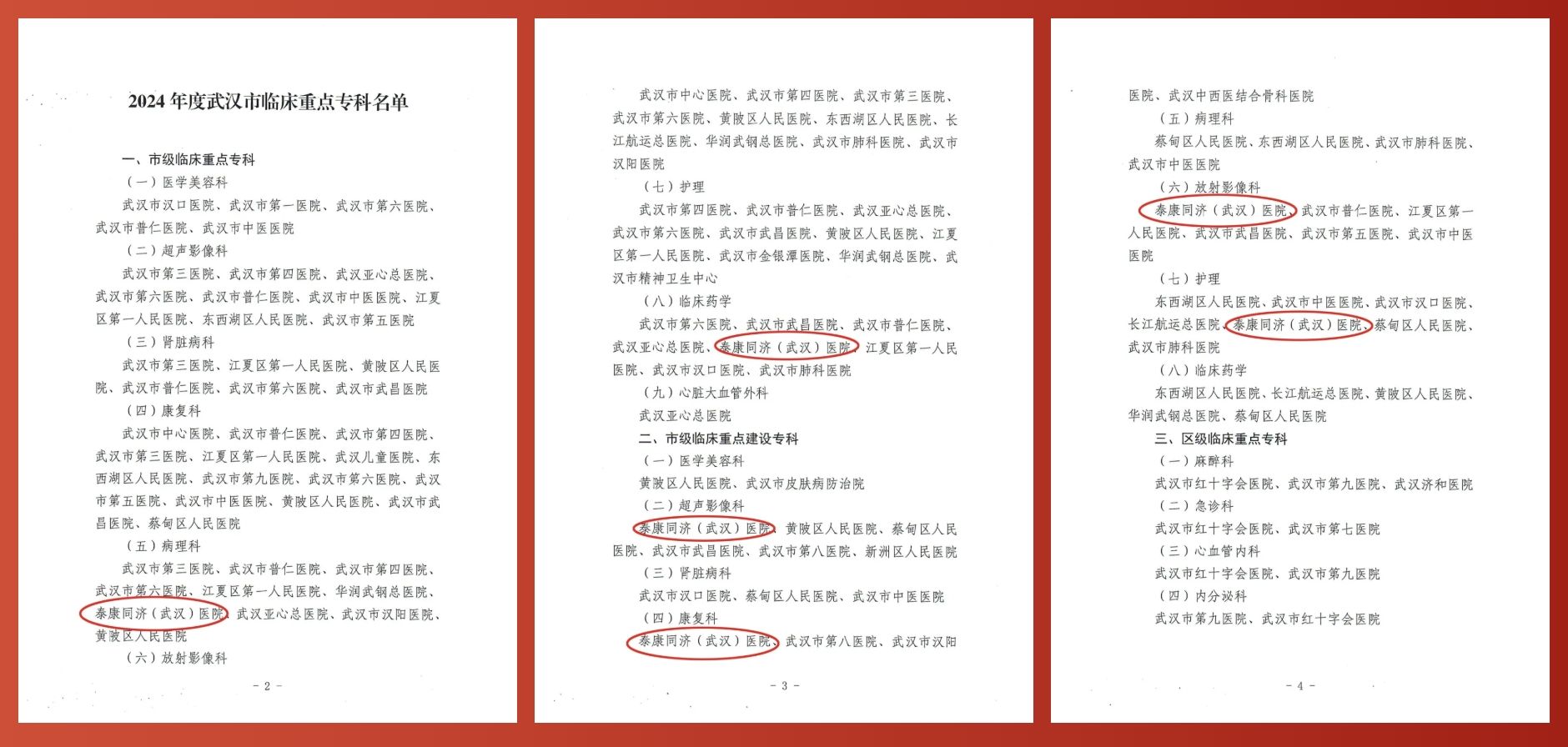 2025年8月19日,泰康同濟(jì)(武漢)醫(yī)院健康管理中心獲評“市級臨床重點(diǎn)專科”,醫(yī)院感染管理辦公室獲評”市級臨床重點(diǎn)建設(shè)專科。